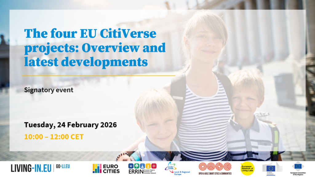 On 24 February 2026, the Living-in.EU initiative hosted the online event “The four EU CitiVerse projects: Overview and latest developments.” The session brought together the four EU-funded CitiVerse projects developing applications for the European CitiVerse—SENSE, x-CITE, CU (European CitiVerses Uniting for Inclusiveness) and 3DxVERSE—to share their first results and discuss progress after the first year of work.